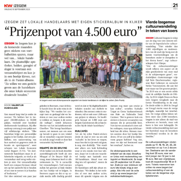 We vervangen de vedetten van het voetbal door de vedetten van onze lokale economie. Met een stickeractie op maat van Aartrijke, Loppem, Veldegem en Zedelgem zetten we onze ondernemers op een leuke manier stevig op de kaart.